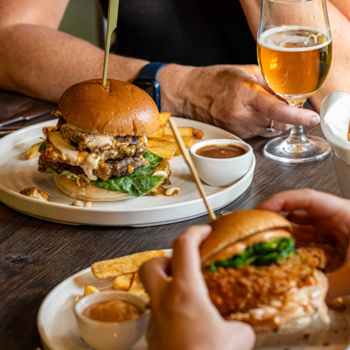 Beef burger, cheese, bacon, skin-on chips | 8.5 574 kcals